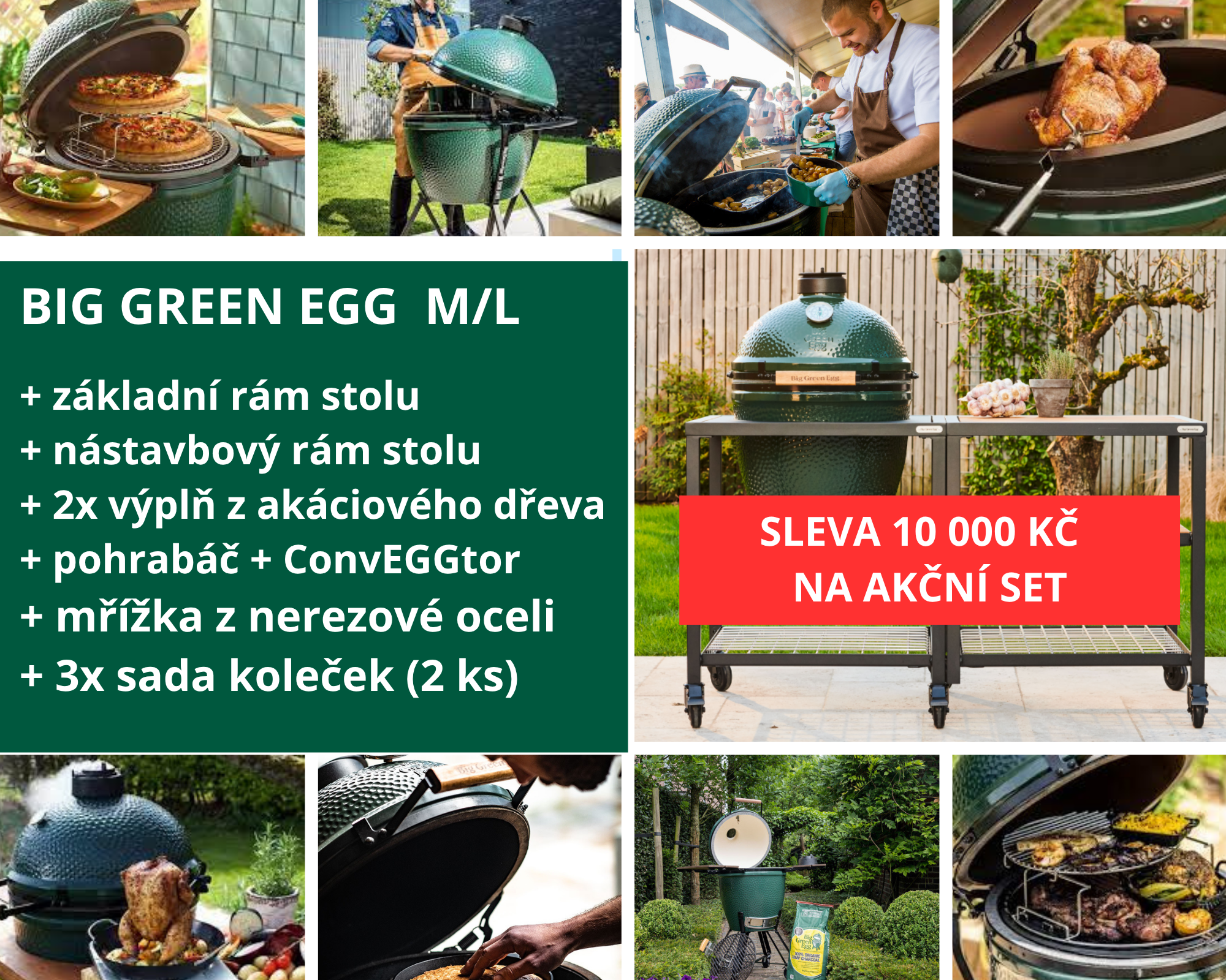 Limitovaná nabídka Big Green Egg M nebo Big Green Egg L, kdy v cenově zvýhodněném setu dostanete: