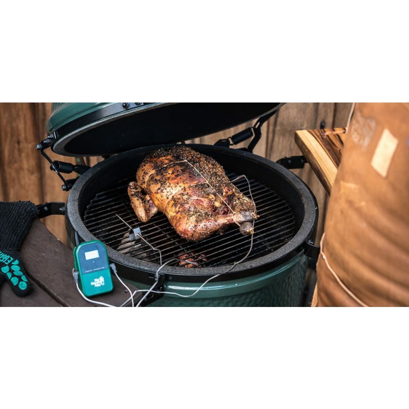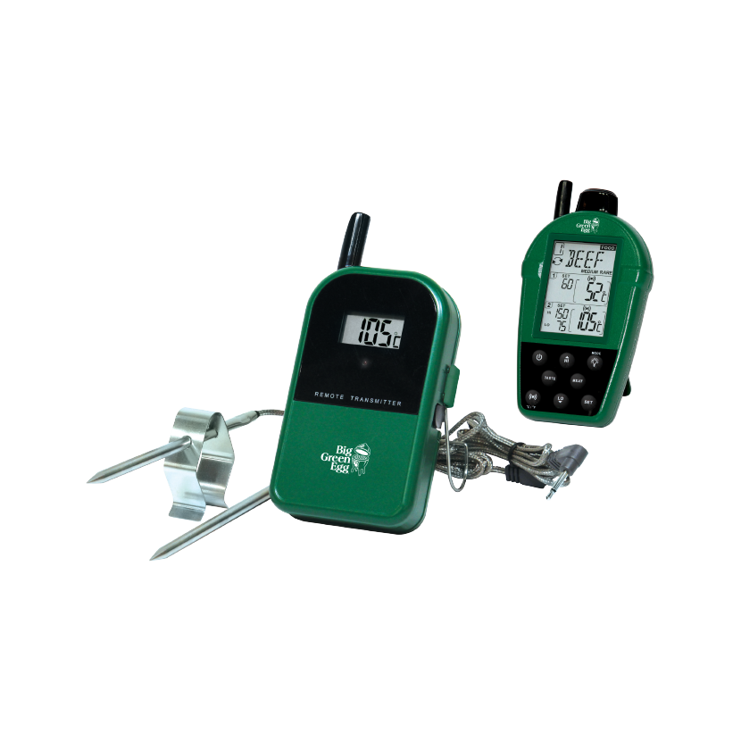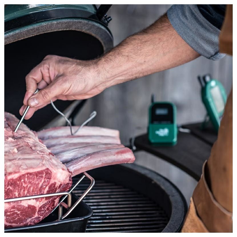 Teploměr pracuje se dvěma sondami a přijímačem, který budete mít u sebe. Jakmile je dosažena požadovaná teplota, přijímač automaticky vydá signál. Dosah přijímače je cca 90 m.