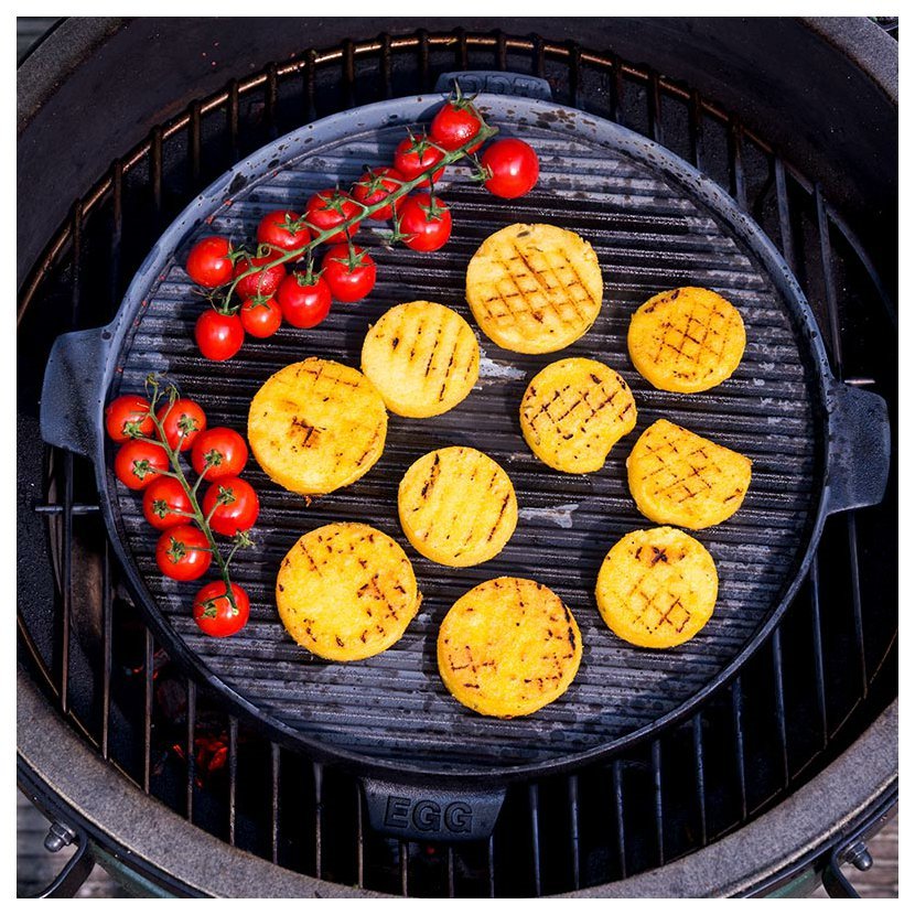 I vám občas mezi rošt Big Green Egg spadnou nějaké suroviny? Tak to se vám do sbírky bude určitě hodit tato litinová plotna. Na její žebrované straně grilujete menší jídla a na hladké straně můžete připravit palačinky nebo volská oka.