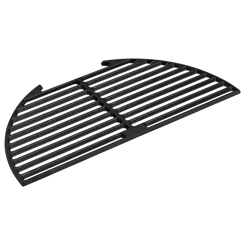 Půlkruhový litinový rošt (Cast Iron Half Grid) je v podstatě poloviční verzí klasického litinového roštu. Protože pokrývá pouze polovinu grilovací plochy, zůstává vám dostatek místa na přípravu dalších pokrmů. Toto příslušenství je kompatibilní výhradně s modelem Big Green Egg XLarge. Pokud chcete mít v tomto modelu celistvý rošt, stačí použít dva půlkruhové rošty a vytvoříte tak kompletní litinovou plochu.