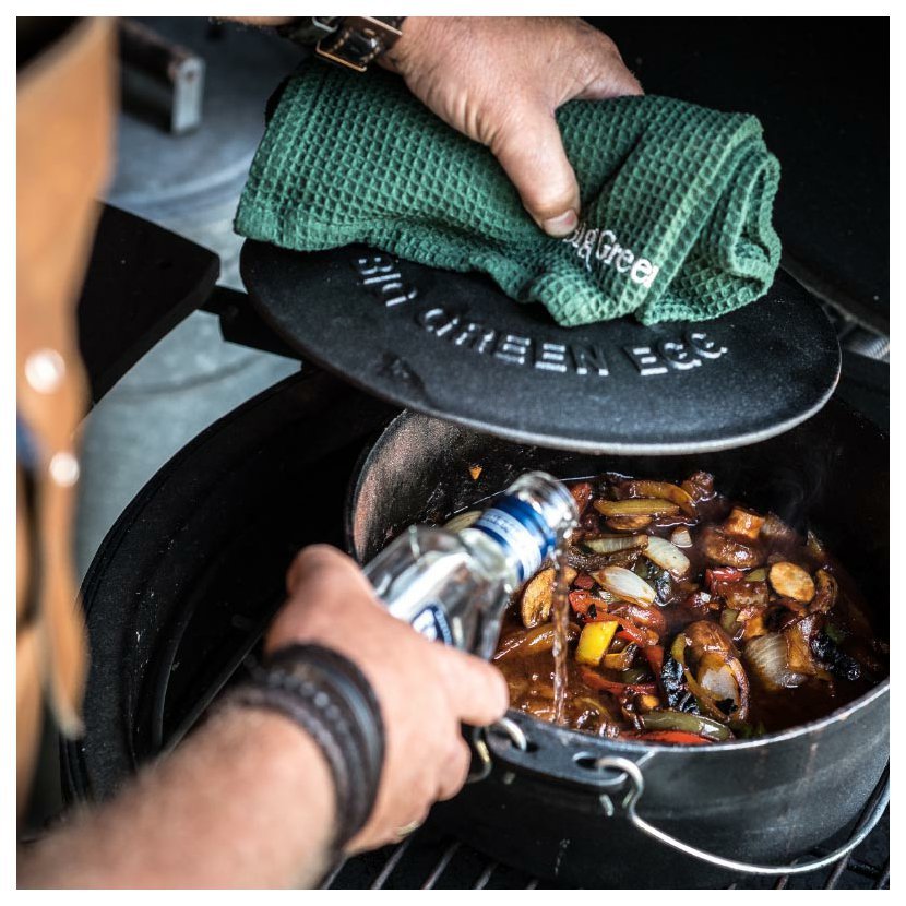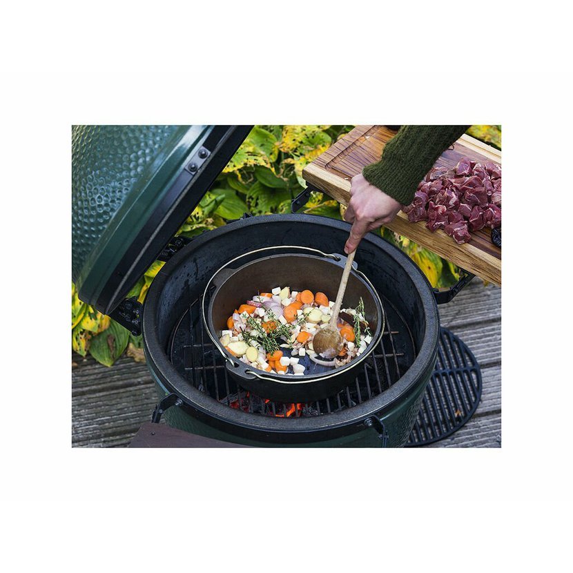 Litinový kotlík (Ø 27 cm), je univerzální litinová nádoba ideální pro vaření, dušení a pečení v grilu Big Green Egg.