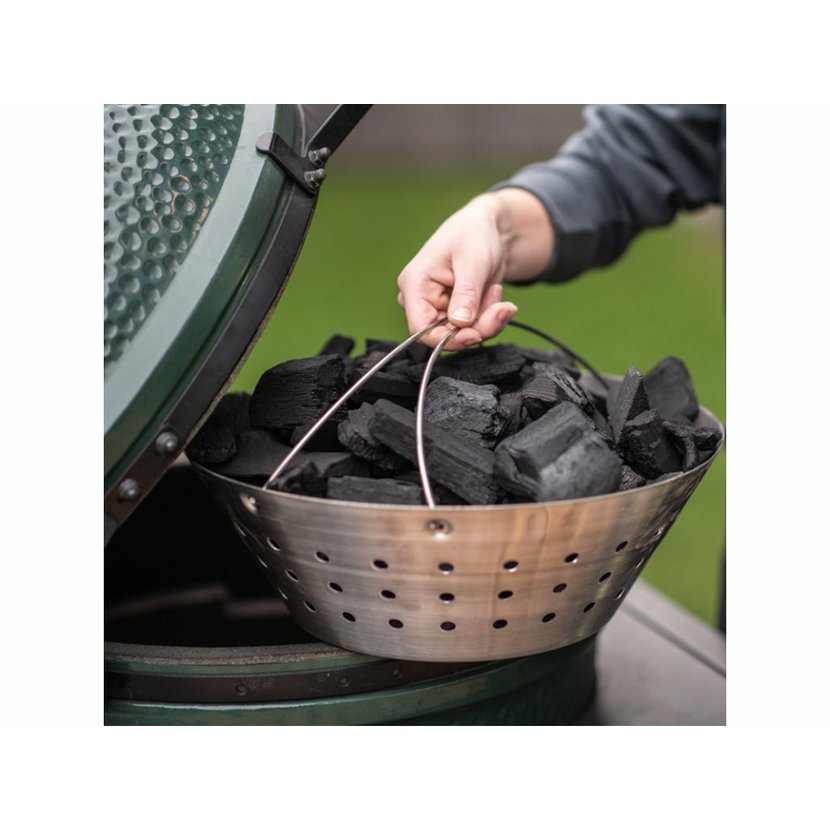 Jak odstraníte popel z ochlazeného EGG, aniž byste si ušpinili ruce nebo se přehrabovali ve zbytku uhlí? Pokud použijete nerezový koš, jednoduše ho po vyhasnutí uhlí zvednete a odfiltrujete popel z uhašeného uhlí. Koš je perforovaný a díky tomu umožňuje maximální proudění vzduchu, což zajistí, že se uhlí rychle rozhoří. Koš z nerezové oceli Big Green Egg udělá všechnu špinavou práci za vás. Jednoduše ho pomocí úchytů umístíte dle potřeby do EGG. Chcete přidat nějaké uhlí? Od teď už můžete použít koš na uhlí.