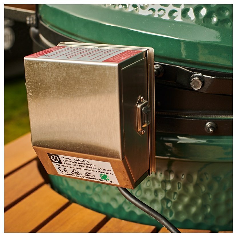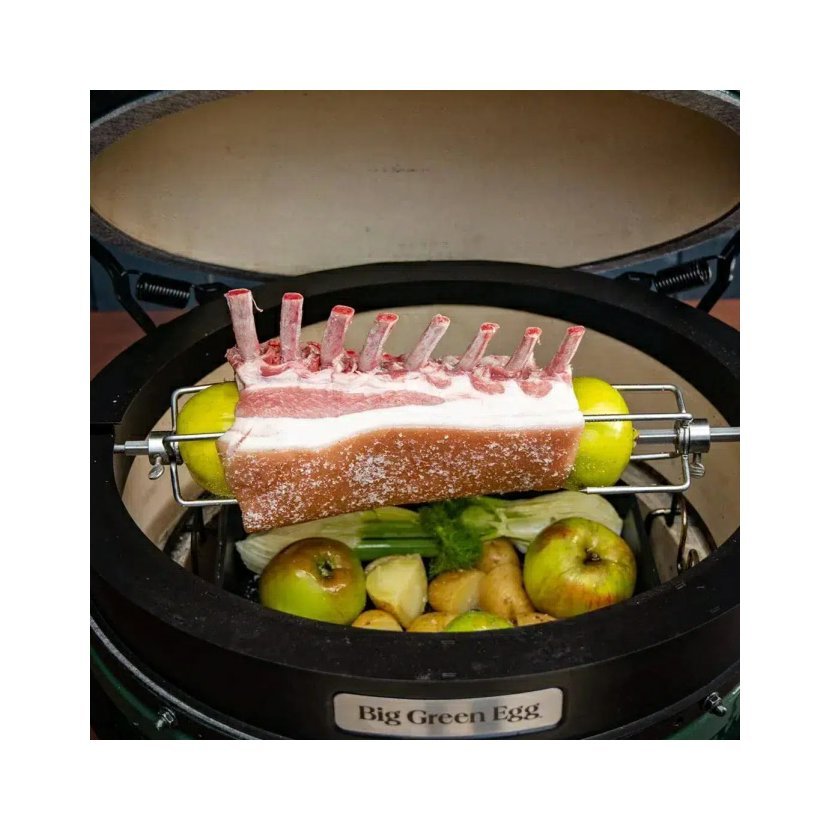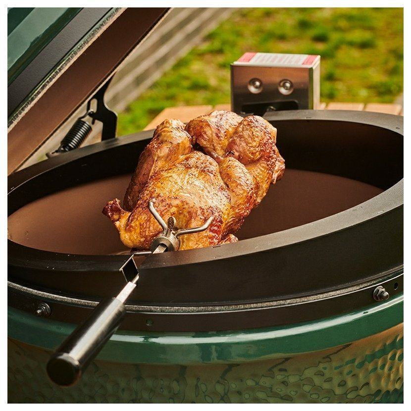 Díky novému doplňku BGE si můžete rozšířit výběr pokrmů. Na nové rotesérii budou ingredience neustále podlévány uvolňujícím se tukem a/nebo šťávou, čímž získají ještě více chuti. Sadu Rotisserie Kitmůžete použít s convEGGtorem nebo bez něj v závislosti na tom, co vaříte, a na teplotě uvnitř BGE.