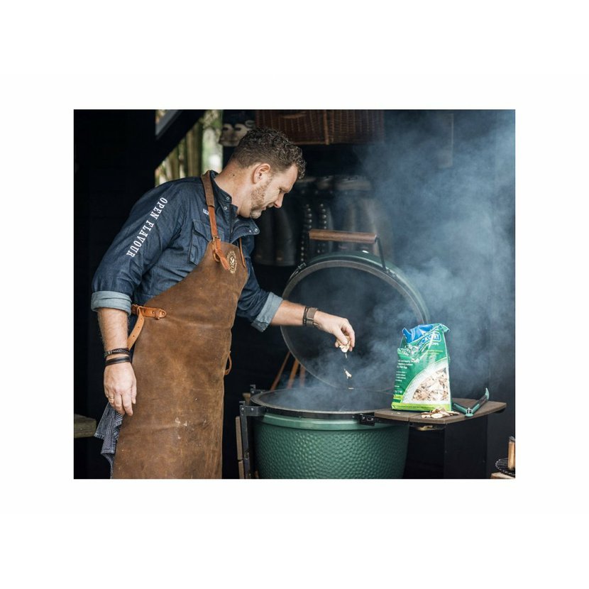 Každý šéfkuchař, který používá Big Green Egg, má svůj vlastní styl. S originálními dřevěnými štěpkami na uzení získají vaše jídla charakteristickou uzenou chuť. Smíchejte předem namočené (stačí cca 20min) dřevěné štěpky s dřevěným uhlím nebo jich hrst rozesypte na dřevěné uhlí.