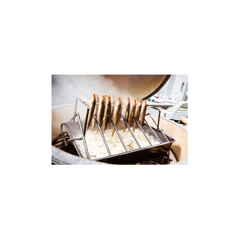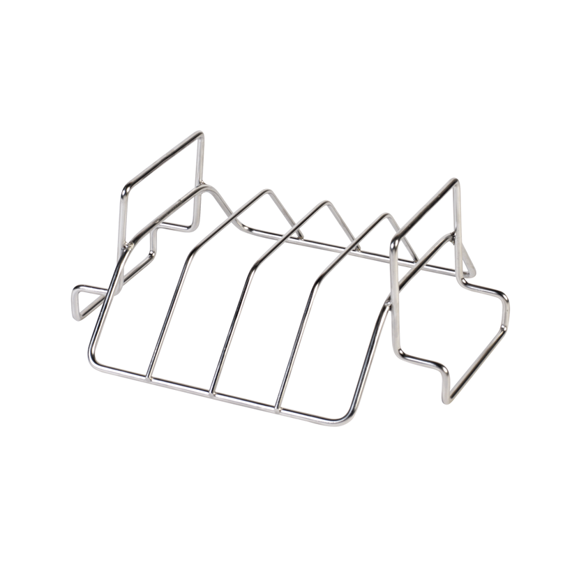 Když se rošt otočí, může být použit jako stojan na žebra. Nejen, že můžete připravovat více žeber současně, ale ta jsou také pečena velmi rovnoměrně, protože horký vzduch uvnitř BGE prochází i mezi nimi.