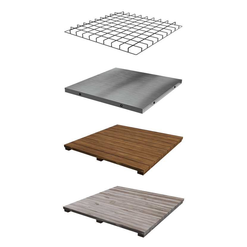 Všechny výplně mají stejné rozměry a tak vám umožňují sestavit si pracovní plochu dle vašich požadavků a ve vašem stylu. Nerezovou výplň dolů a akátovou nahoru? Je to jen na vás. Můžete si vybrat mezi nerezovou mřížkou, nerezovou nebo akátovou výplní. Příliš mnoho variant? Výplně můžete kdykoliv jednoduše vyměnit nebo prohodit a změnit tak vzhled celé kuchyně.