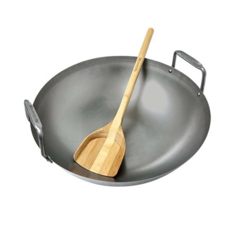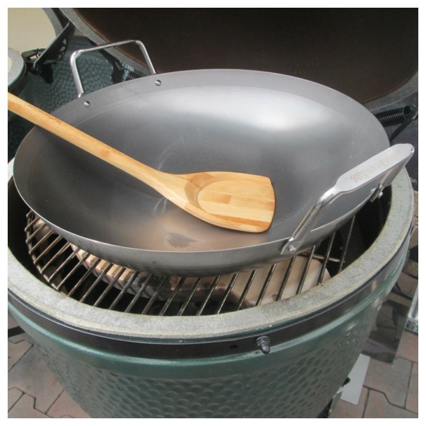 Pánev Wok má dvě kovová madla pro snadnou manipulaci a rovné dno, proto je možné jí dávat přímo na grilovací rošt. Lze ji též používat i jako běžné kuchyňské nádobí, funguje na všech typech kuchyňských vařičů.