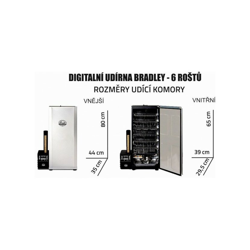 Potraviny uzené v Bradley udírnách si zachovají čistou chuť jídla bez jakékoliv pachuti. Zatímco jiné udírny, dostupné na trhu, potřebují neustálou péči, Bradley Smoker Digital automaticky vyrábí čistý a chladný kouř po dobu až 9 hodin bezpečně a bez zásahu. Hodnotu teploty v udírně, dobu generování kouře a dobu činnosti topného tělesa nastavujeme na digitálním displeji generátoru kouře. Podavač briketek funguje po spuštění automaticky. Náklady na hodinový provoz udírny jsou cca 33-40Kč (náklady na udicí briketky).