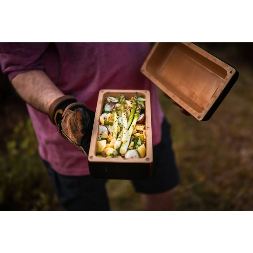 Zavřít a zahřát – Použijte ji v troubě, na sporáku, grilu nebo otevřeném ohni. Díky kvalitnímu jílu se ingredience vaří rovnoměrně a zachovávají si výživové hodnoty.