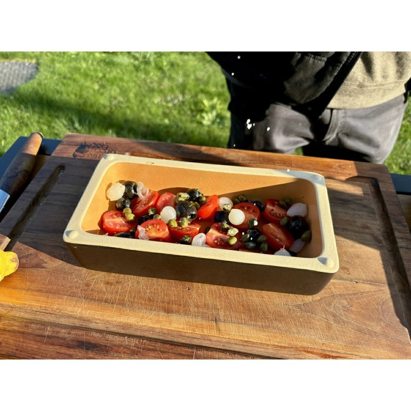 Skvěle se hodí k přípravě zeleniny, ryb, raných brambor, masa nebo dokonce ovoce – a to bez nutnosti přidávat tuk. Cihla je ohnivzdorná a odolná vůči teplotním šokům, což z ní činí univerzální nástroj pro vaření doma i venku.