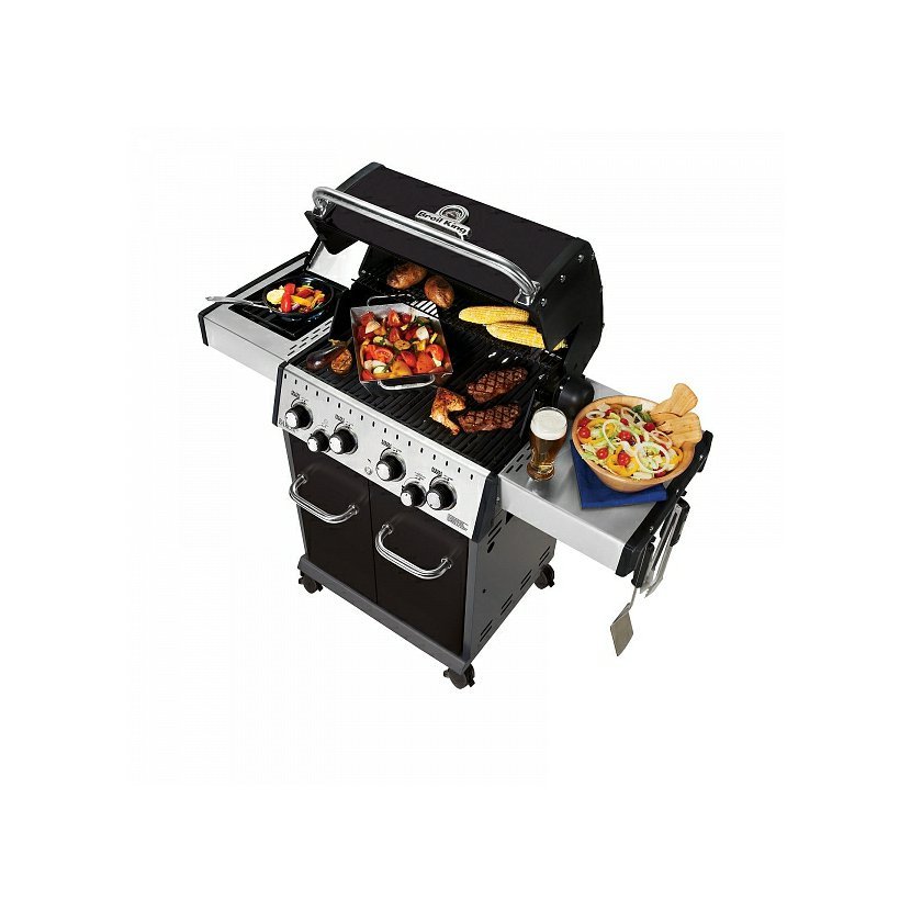 Gril je již v základu vybaven rotiserií (rožnící jehla s elektrickým motorkem) na grilování kuřat a dalších pokrmů. Pro použití rožně je v zadní části instalovaný přídavný trubkový hořák, který zajišťuje optimální výkon při rožnění. Gril je osazen odkládacím přídavným roštem. Každý hořák má samostatnou regulaci pro optimální nastavení výkonu pomocí jemného nastavení regulačním knoflíkem. Víko grilu je dvouplášťové, což vám zajistí stálou optimální teplotu v grilu.
