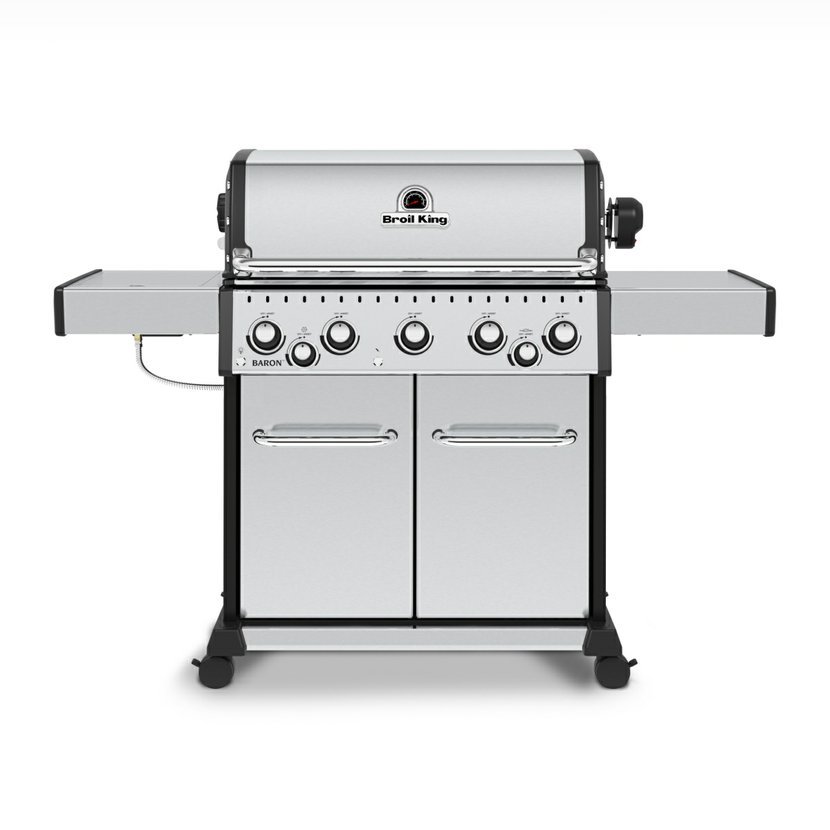 Gril Baron S 590 IR je luxusní plynový gril s pěti nerezovými hořáky, přídavným zadním hořákem pro rožnění a infra hořákem v postranní poličce. Součástí grilu je rotiserie s elektrickým motorkem pro rožnění kuřat a připojovací hadice s regulátorem pro napojení na PB lahve. Nový model má několik vylepšení především novou litinovou vanu grilu, lepší systém odvodu tuku a podsvícené ovládací knoflíky.
