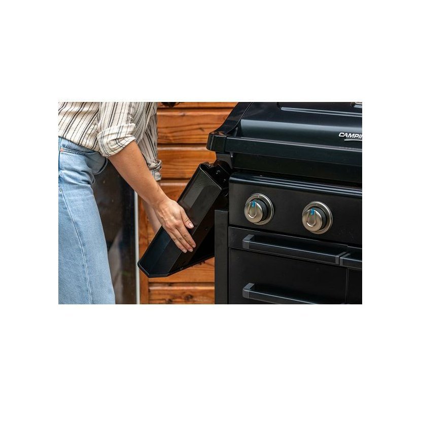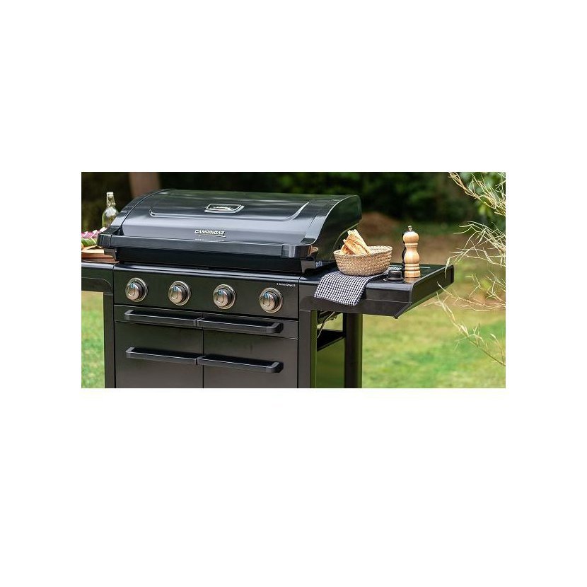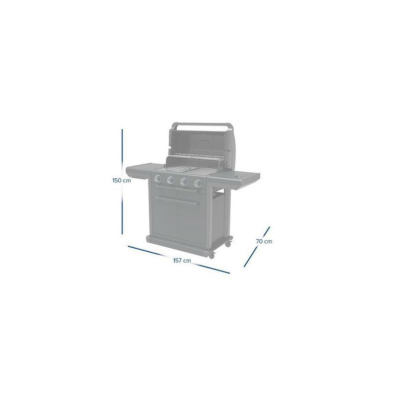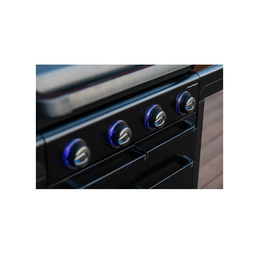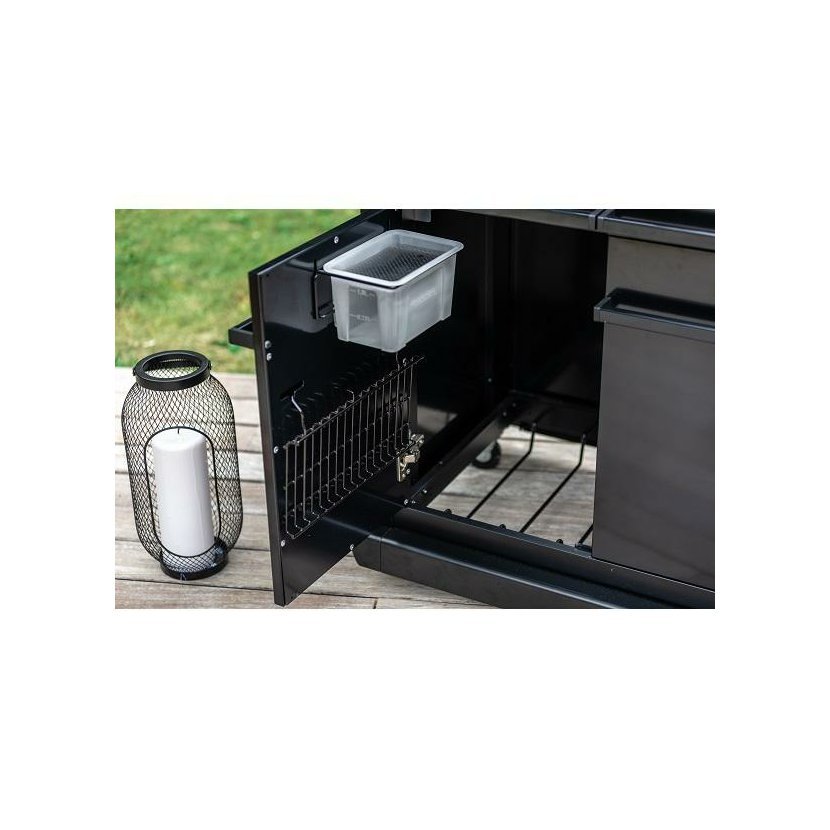 Stylový zahradní plynový gril se čtyřmi inovativními Blue Flame hořáky z nerezové oceli a bočním vařičem na přípravu omáček a příloh. Grilovací plocha je rozdělena na dvě části. Litinový rošt Culinary Modular a oboustranný tál. Nová technologie tohoto grilu umožnila odstranit rozptylovače tepla. Je zabudovaná přímo v roštech grilovací plochy. Nový unikátní čistící systém InstaClean® AQUA vám čištění grilu ještě více zpříjemní, omezuje zpětné vznícení šťáv a díky němuž budou Vaše pokrmy ještě šťavnatější. Pomocí vody ve dvou odpadních zásobnících usnadníte nejen čistění grilu, ale zvlhčíte celý grilovací prostor. Odpadní voda je pak snadno vypouštěna do vyjímatelné nádržky s filtrem umístěných pod oběma zásuvky, které vylijete a opláchnete. Pomocí ovládacích knoflíků a teploměru v poklopu lze pohodlně regulovat teplotu. Nový Push2Fold systém sklápění stolků Vám umožní pohodlně stolky sklopit a zajistit. Přední kryt je tvořen dvoustěnnými dvířky a v těle grilu můžete uskladnit i 10 kg PB lahev. Připojovací sada pro připojení na PB lahev není součástí výrobku, nutné dokoupit.