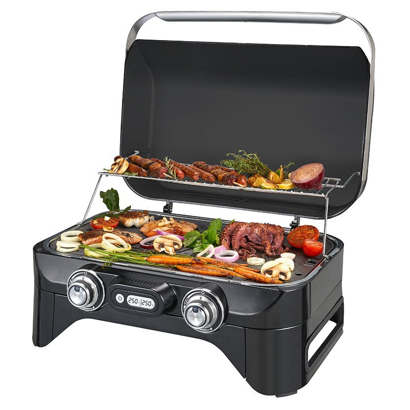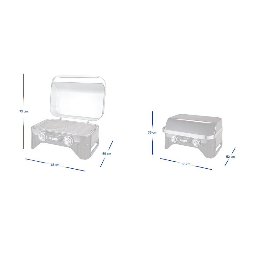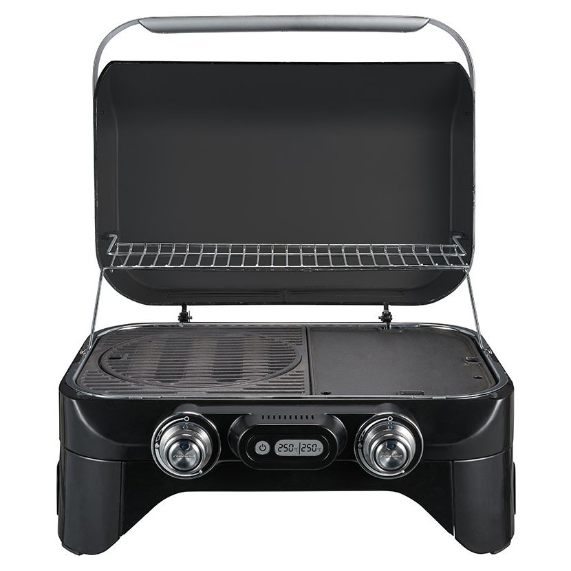 Malý, kompaktní, stolní, plynový gril pro více možností grilování s litinovým roštem 58 x 36cm.