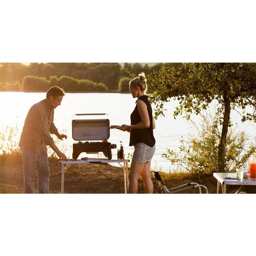 Stolní gril, který využijete nejen při cestování. Intuitivně navržený pro snadné grilování kdekoliv, těží z dokonale rovnoměrného rozložení tepla díky výkonným hořákům Blue Flame z nerezové oceli. Ochrana hořáku je integrovaná do optimalizovaných litinových mřížek, čímž odpadá použití ochranné vrstvy hořáku pod grilovací plochou. Tím se zabrání hromadění horkého tuku a šťávy z masa ve vaně a vzniku nebezpečných plamenů, což zajišťuje bezpečnější, příjemnější a znamenité výsledky grilování.