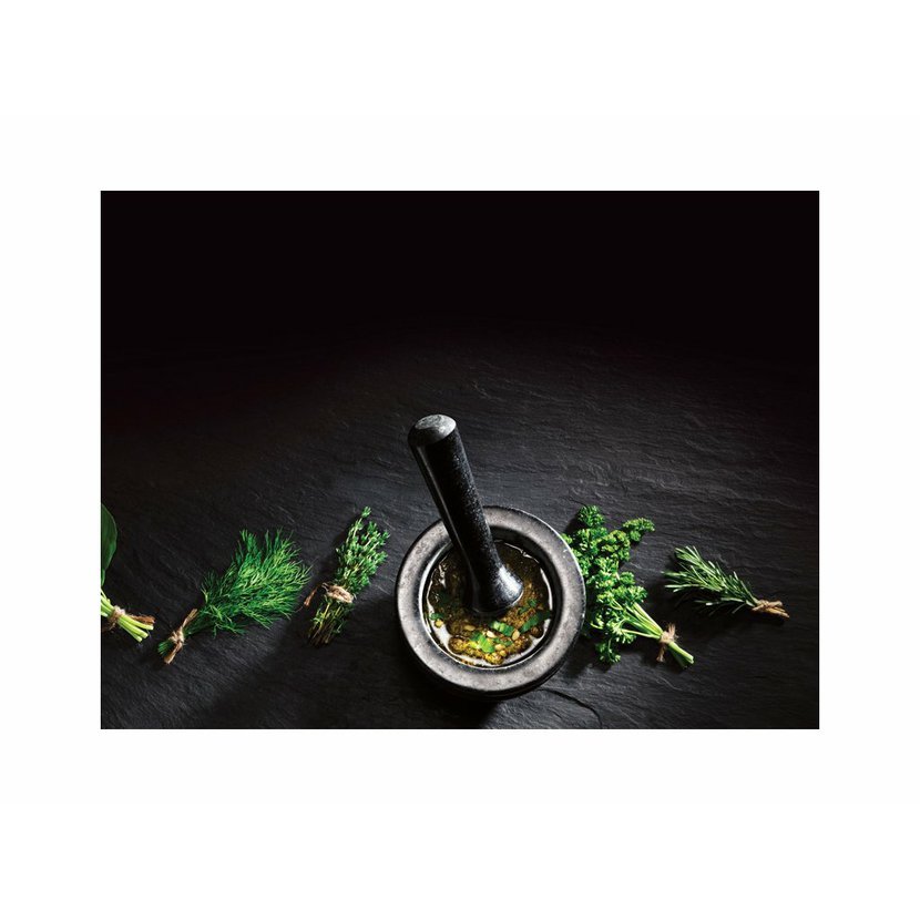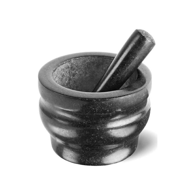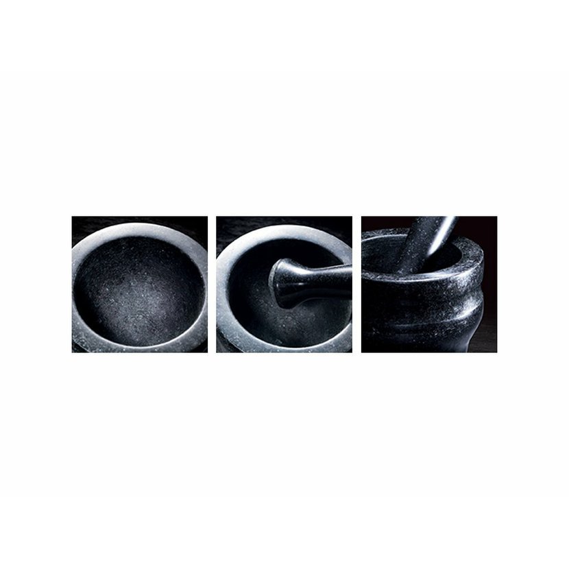Hmoždíř je navržen tak, aby maximalizoval povrchový kontakt mezi dvěma elementy, což zlepšuje výkon mletí bylin a koření. Díky stylovému, leštěnému exteriéru pro snadné čištění, lze hmoždíř použít jak k výrobě, tak k servírování mnoha pokrmů, jako je guacamole, hummus a salsa, stejně jako k přípravě suchých kořenících směsí a marinád.
