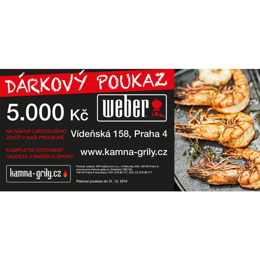 Tento dárkový poukaz je vhodný zejména jako dárek k různým výročím či svatbám. Konkrétně novomanželské páry ocení především takový dárek, který je ničím přímo nesvazuje. A protože s tímto kuponem jde již opravdu z Weber sortimentu leccos pořídit, zajisté potěší. Dárkový poukaz v hodnotě 5 000 Kč však v naší nabídce není jediný. Udělat radost můžete i s kuponem za 2 000 Kč, 1 000 Kč či 5 000 Kč.