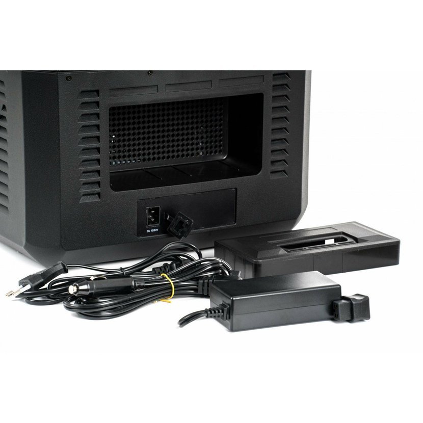 Součástí balení jsou kabely pro připojení do auto zásuvky (12/24 V) i do běžné zásuvky v domácnosti (220–240 V). Chladničku tak využijete kdekoliv – není třeba dokupovat žádný adaptér.