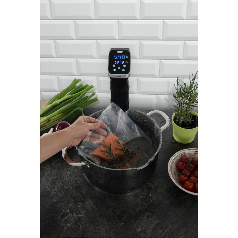 Tato výkonná jednotka pro SousVide vaření je výborná pro malé kuchyně a domácnosti a své využití najde i v menších gastro-provozech. Díky metodě sous-vide neboli vaření ve vakuu se vám podaří připravit delikátní pokrmy, za které byste si i v nejlepších restauracích pořádně připlatili. Ponořením do libovolné nádoby s vodou získáte možnost vaření potravin, zavakuovaných ve varných sáčcích, moderní šetrnou metodou.