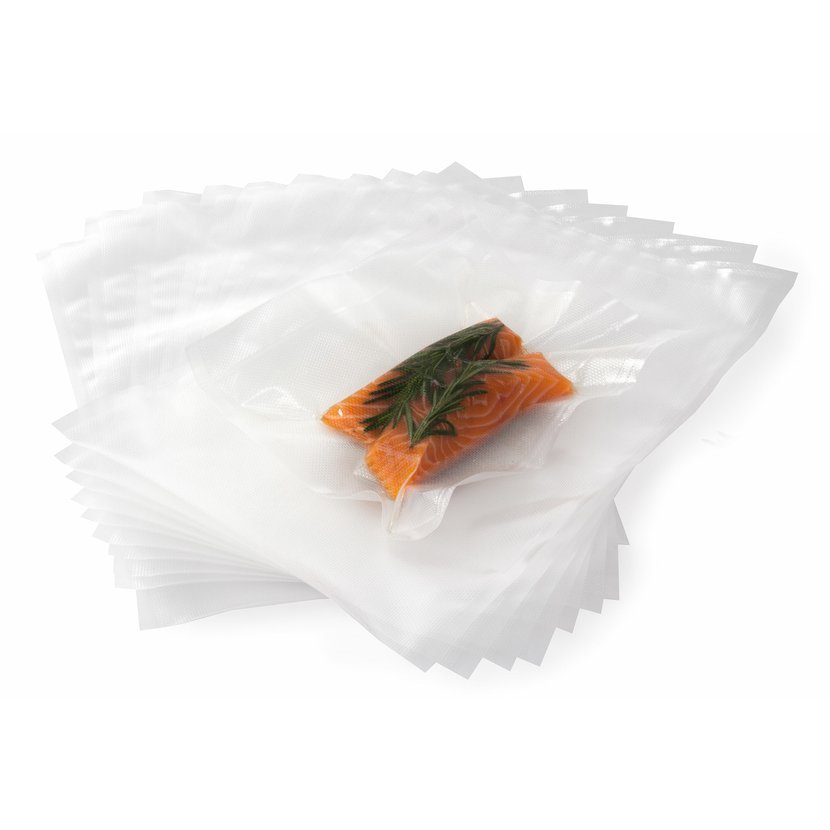 Vakuovací sáčky G21 o rozměrech 28 x 40 cm jsou díky své vysoké pevnosti a kvalitnímu provedení vhodné nejen pro prodloužení trvanlivosti potravin vakuováním a jejich uchovávání v ledničce nebo v mrazáku, ale využijete je i k vakuování surovin pro sous-vide vaření.
