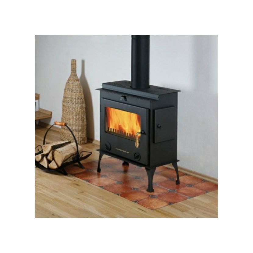 Krbová kamna s bočním přikládáním a terciálním spalováním. Výkon 2-12 kW, výhřevnost až 220m3.