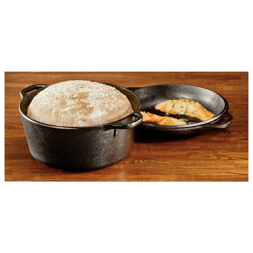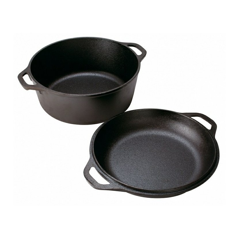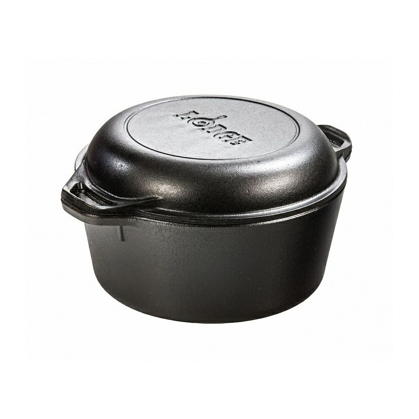 Litinový hrnec o objemu 4,7l s poklicí, kterou lze využít i jako pánev o průměru 26cm. Originální americké litinové pánve a hrnce LODGE lze použít nejen na grilu a přímém ohni, ale také na plynových a elektrických sporácích, v troubě, ale zejména na idukční desce. Čím déle se litinové nádobí používá, tím lepších výsledků při vaření docílíte. Při správné péči o litinové nádobí vydrží i déle než 100 let. Litinové nádobí je určené k tepelné úpravě potravin na tuku ! Litinové nádobí je ideální pro přípravu steaků, smažení, fritivání, pečení, dušení.