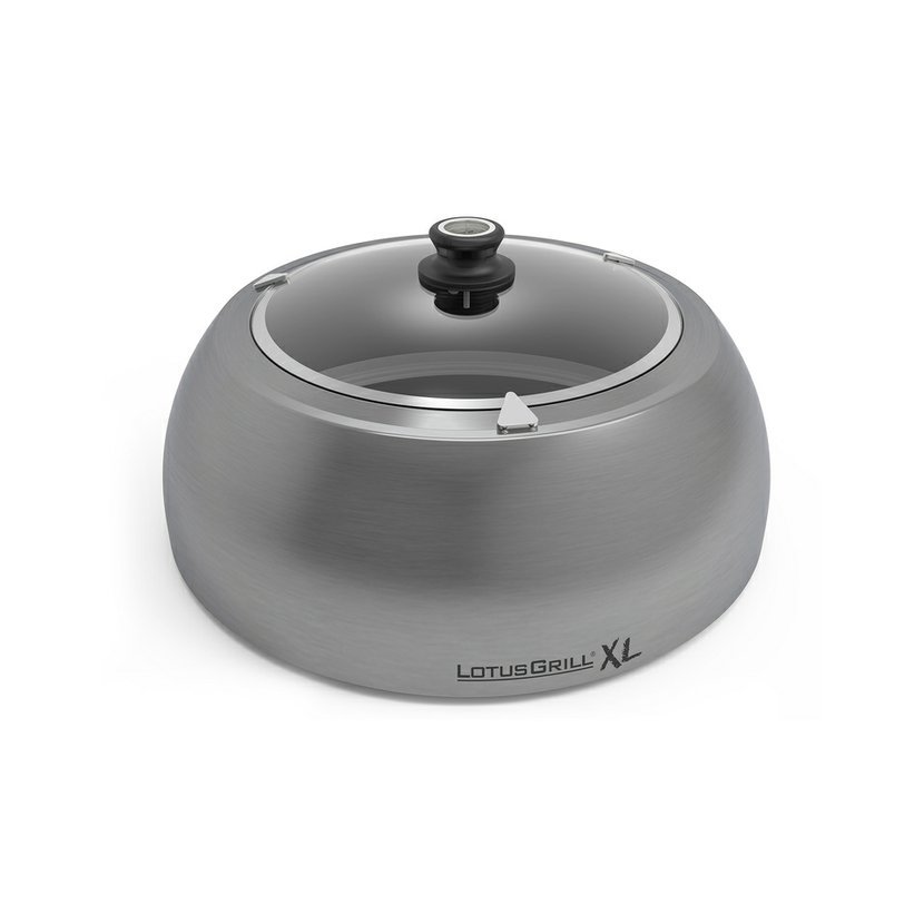 Speciální poklop pro LotusGrill XL s teploměrem, vestavěným do rukojeti poklice. Díky systému zpětného proudění vzduchu na grilu perfektně sedí a umožňuje dokonalou kontrolu, regulaci a udržování grilovací teploty.