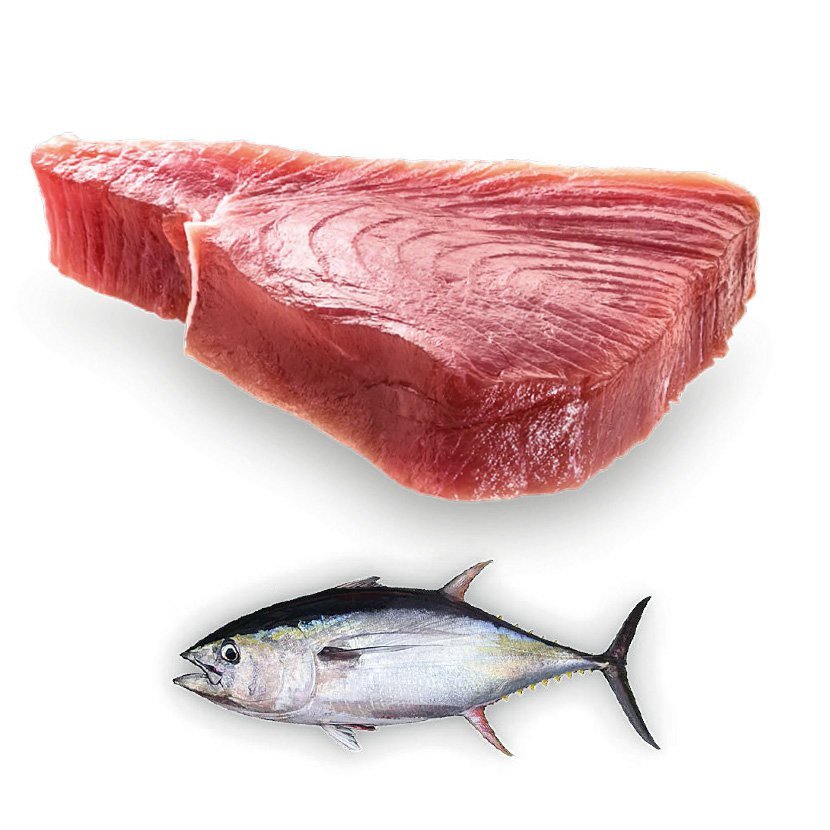 Prémiový steak z tuňáka. Původem z Maledivy. Loven na pruty a udice. Okamžitě po vylovení zpracován na steaky, které jsou následně hluboce zmrazenybez jakéhokoli chemického zásahu. Maso je krásně šťavnaté a má výraznou oříškovou chuť. Skvěle se hodí ke zpracování za syrova (sashimi), či na gril.