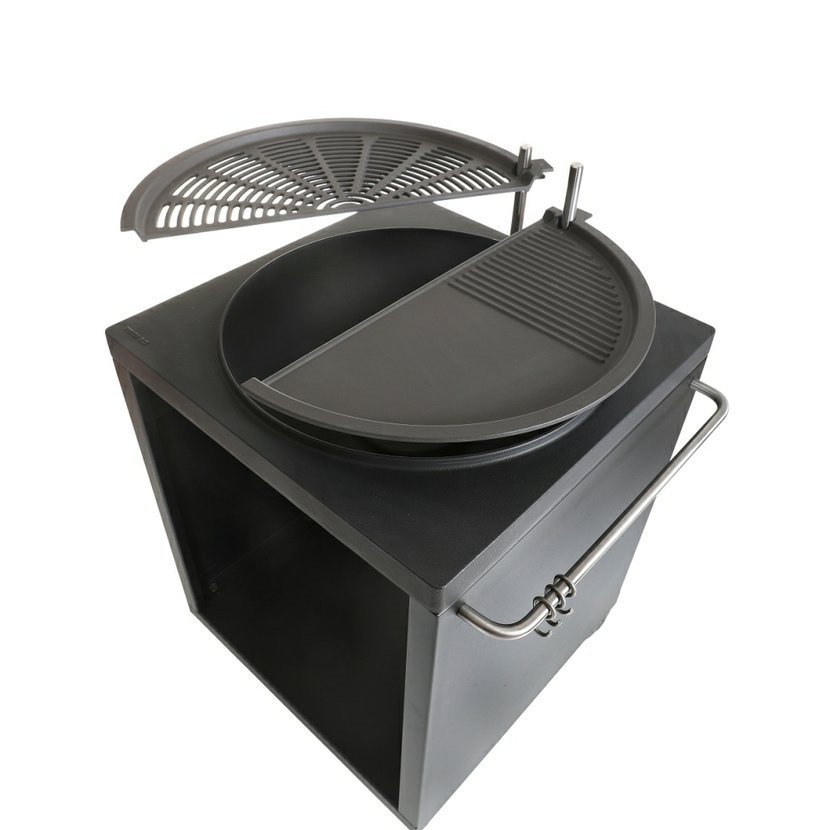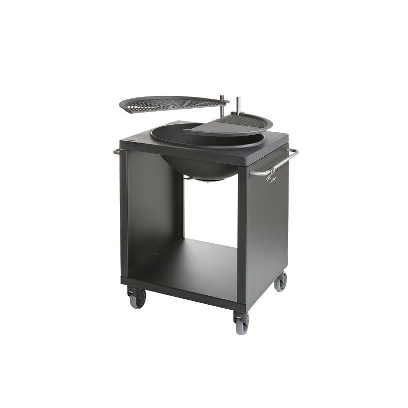 Grilovací část se skládá z "mísy", grilovací mřížky a grilovacího tálu. Celkový průměr je 60 cm a výška roštu je nastavitelná. Dvěma půlkruhy lze otáčet stranou, grilovat tak můžete například maso při vysoké teplotě i opéct chleba nebo zeleninu při nízké teplotě.