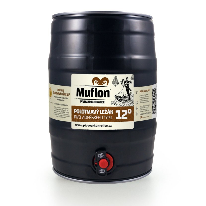Pivo vídeňského typu temnější jantarové barvy dosažené kombinací plzeňského a vídeňského sladu, nikoliv sladu karamelového, typického pro většinu černých piv. Díky tomu chutná i odpůrcům tmavých piv, kterým v radosti z pití brání právě ona karamelová chuť. Pro chmelení používáme dva druhy českých chmelů, odrůdu Sládek pro hořkost a klasický žatecký poloraný červeňák pro chmelové aroma. Na jazyku sládne, na patře pak hořkne. Polotmavý MUFLON 12° je vhodný pro chuťovou konfrontaci s jeho slabším bratrem MUFLONEM 11°.