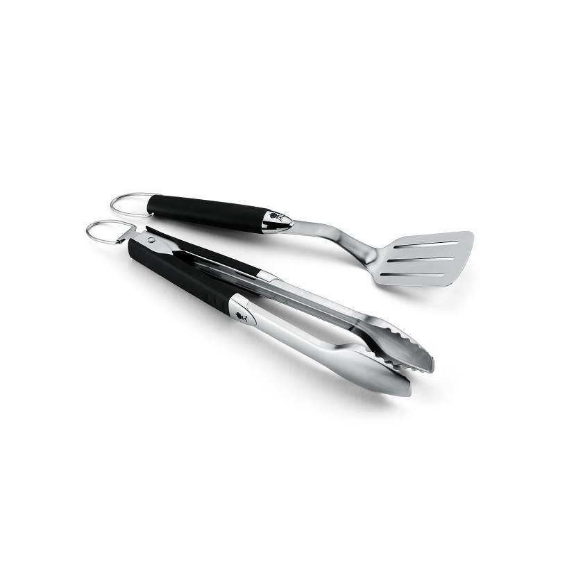 Tato dvoudílná sada grilovacího náčiní obsahuje obracečku a kleště. S tímto náčiním z nerezové oceli můžete snadno manipulovat s grilovaným masem, zeleninou aj. Navíc jsou kleště uzamykatelné, a tak se snáze skladují.