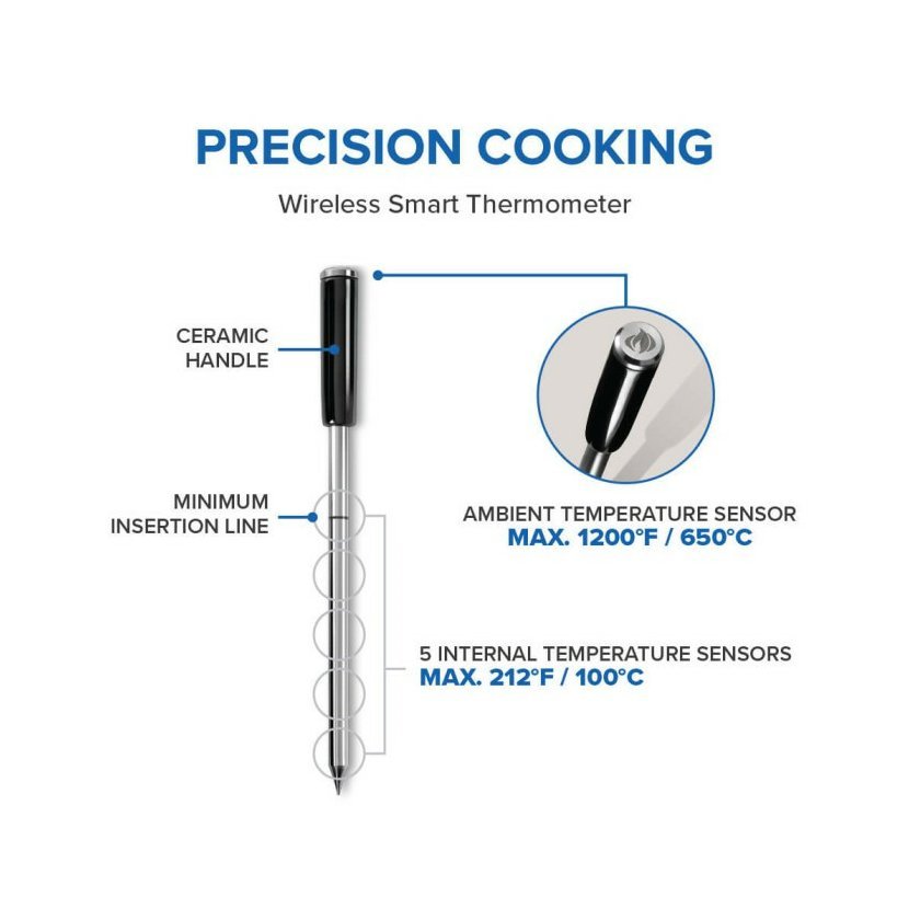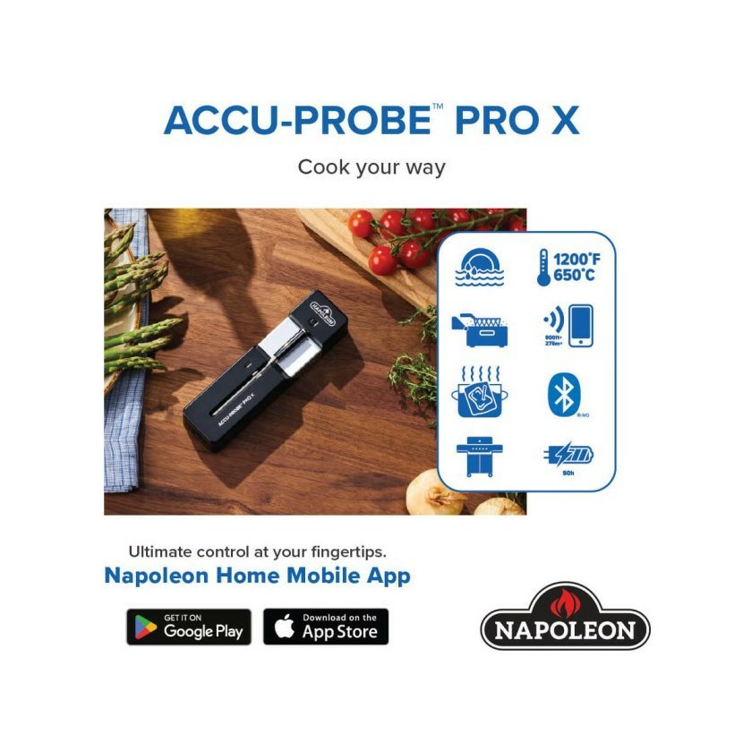 Objevte novou úroveň přesnosti při vaření s bezdrátovým teploměrem Napoleon ACCU-PROBE™ PRO X. Tento špičkový pomocník zvládá extrémní teploty až 650 °C a je vybaven voděodolnou, ultratenkou sondou se šesti samostatnými senzory, které zajistí naprosto přesné měření – ať už připravujete cokoliv. Ideální pro použití v troubě, na grilu, na pánvi i při metodách jako sous-vide nebo smažení ve fritéze.