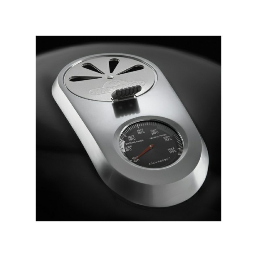V poklopu grilu je zabudován teploměr s velkým a přehledným budíkem, který ukazuje průběžnou provozní teplotu uvnitř grilu