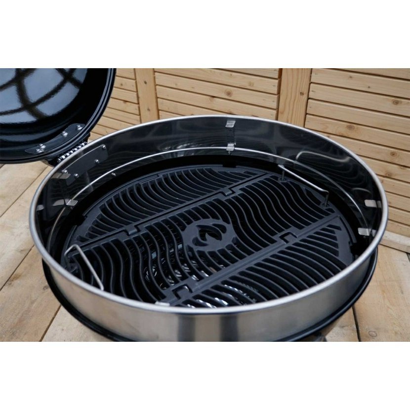 Litinový rošt je v kotli možné umístit ve dvou úrovních - při umístění v horní části je perfektní pro nepřímé grilování, při umístění ve spodní části získáte tak obrovský grilovací prostor i pro vysoké kusy masa např. krocana