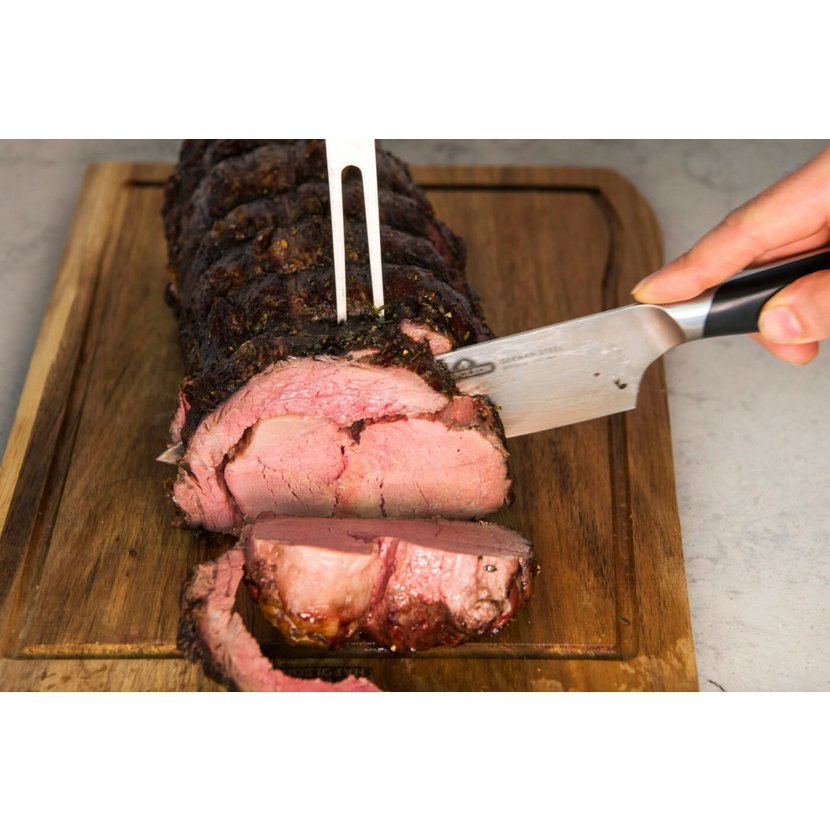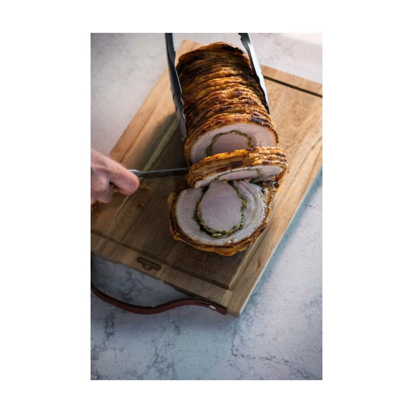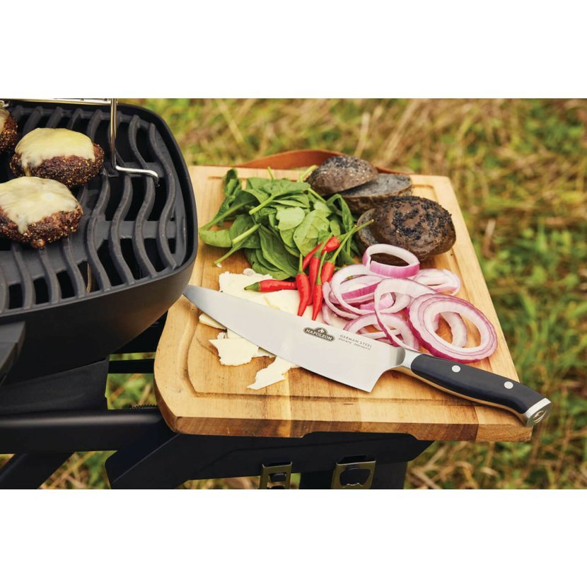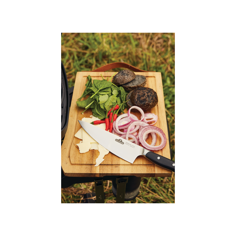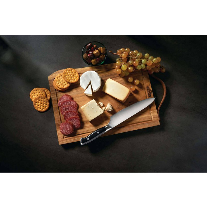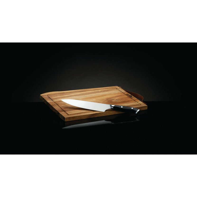 Prkénko Napoleon je vyrobeno z pravého akáciového dřeva. Toto organické krájecí prkénko je natolik elegantní, že může sloužit i jako servírovací tác, a zároveň dostatečně odolné pro každodenní používání. Přirozené oleje obsažené ve dřevě zajišťují odolnost proti vlhkosti, houbám i mikrobům. Teplé a syté zbarvení dřeva činí z každého kusu originál. Prkénko se snadno udržuje, doporučujeme ruční mytí bez namáčení. Elegantní kožené madlo slouží k pohodlnému přenášení nebo stylovému uložení. Každé prémiové prkénko obsahuje šéfkuchařský nůž Napoleon PRO Executive – extrémně ostrý, odolný nůž z německé nerezové oceli, jediný, který kdy budete potřebovat.