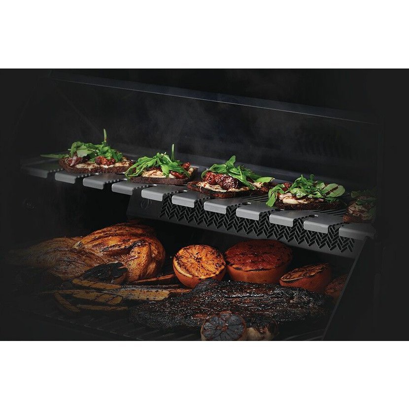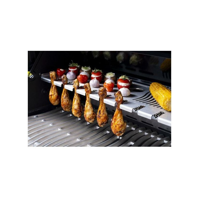 Multifunkční nástavec zvětšuje prostor grilu a je navržen tak, aby drobné suroviny nepropadávaly. Okrajové výřezy umožní zavěšení pokrmů.