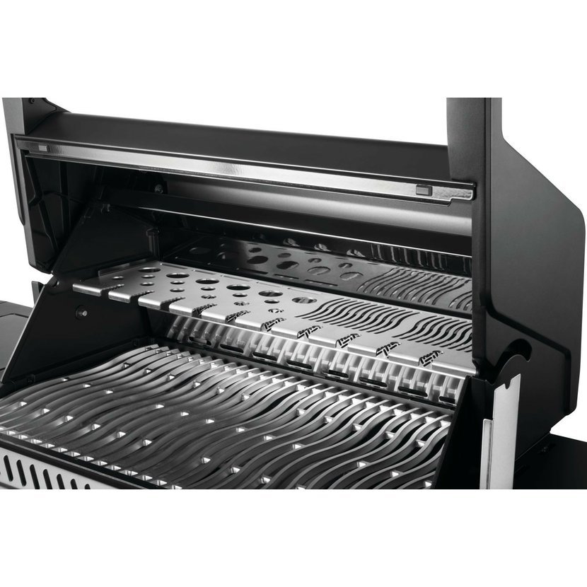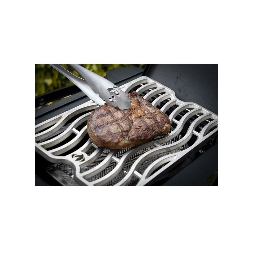 Hlavní grilovací plochu je tvořena masivním vlnitým nerezovým roštem, který je nově litý z nerezové oceli. Odkapávání tuku a šťáv na hořáky brání nerezové flavorizéry (kryty hořáků) a též zajišťují rovnoměrnou distribuci tepla uvnitř grilu. Elektronický systém zapalování Jet-Fire vyniká svou jednoduchostí a funkčností: stačí pouze stisknout a otočit! Grilovací plocha má 71 x 46 cm. Je vytápěna čtyřmi hlavními nerezovými hořáky. Nad hlavním roštem je umístěn multifunkční přídavný ohřívací rošt. Přídavný hořák (sizzle zóna) v bočním stolku s nerezovým roštem pro dosažení vysoké teploty především na rychlé zatažení masa.