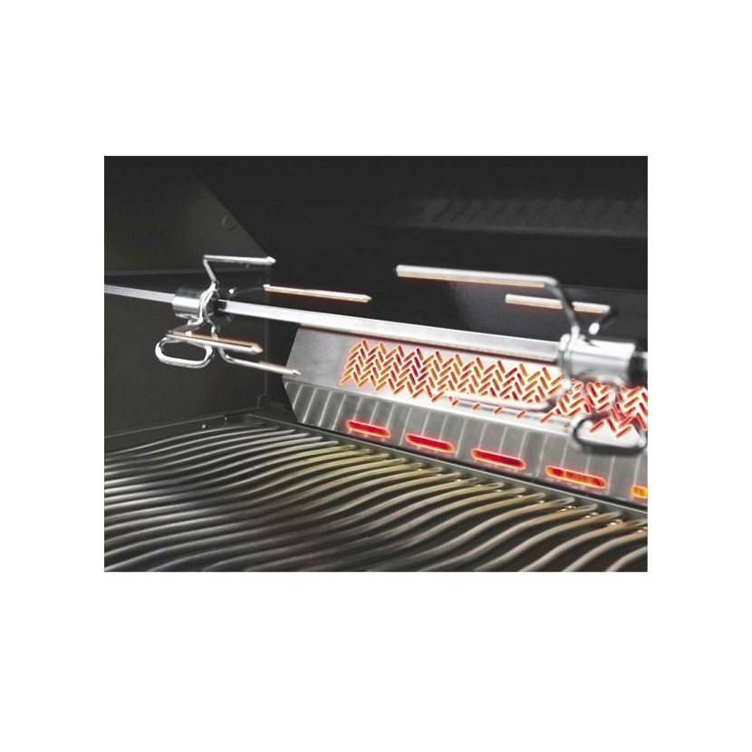 Gril disponuje bočním keramickým infračerveným hořákem s masivním nerezovým roštem a vnitřním nerezovým infračerveným hořákem pro roteserii.