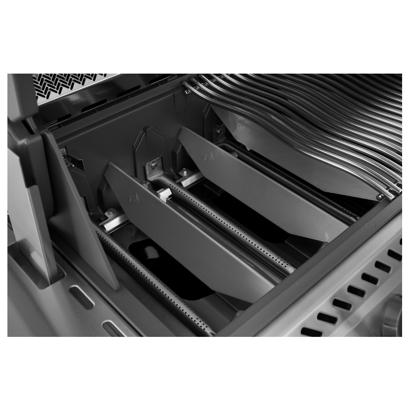 Grilovací rošty jsou z masivní nerezové oceli s typickým WAVE™ designem, který podporuje rovnoměrné propečení a vytváří nezaměnitelné grilovací mřížky. Vysoký standard pokračuje i pod rošty: trubicové hořáky spolu s dvouúrovňovými tepelnými přepážkami (flavorizačními lištami) se starají o perfektní rozvod tepla a zároveň pomáhají minimalizovat vzplanutí tuku.