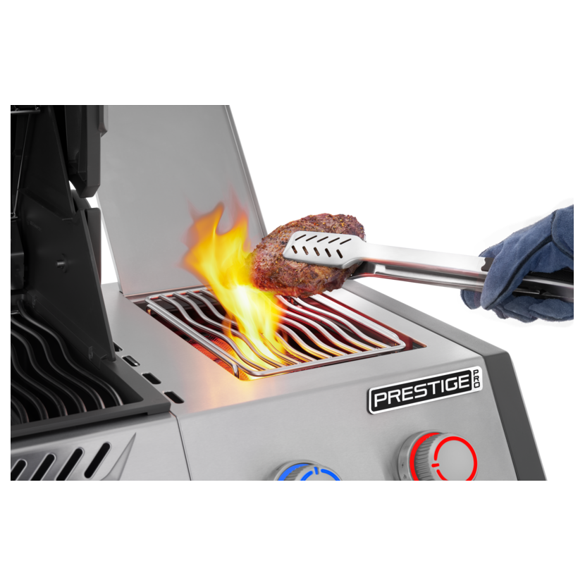 Sizzle Zone™ u grilu Napoleon Prestige Pro WiFi je výkonný boční infra hořák určený pro rychlé zatažení steaků i dalších druhů masa. Díky velmi vysoké teplotě dokáže vytvořit perfektní kůrku a zároveň zachovat šťavnatý vnitřek. Hodí se pro „profesionální“ grilování, když chcete dosáhnout autentického steaku jako z restaurace, a navíc umožňuje pohodlnou kontrolu přes WiFi. Sizzle Zone™ lze zároveň jednoduše používat i jako klasický boční hořák pro vaření na pánvi nebo v hrnci.