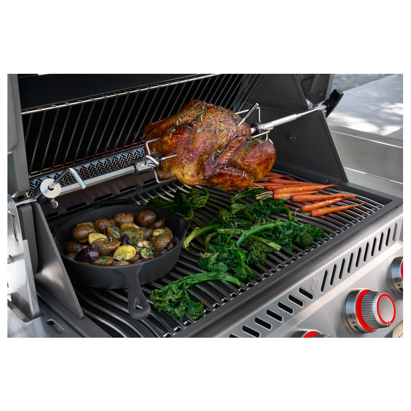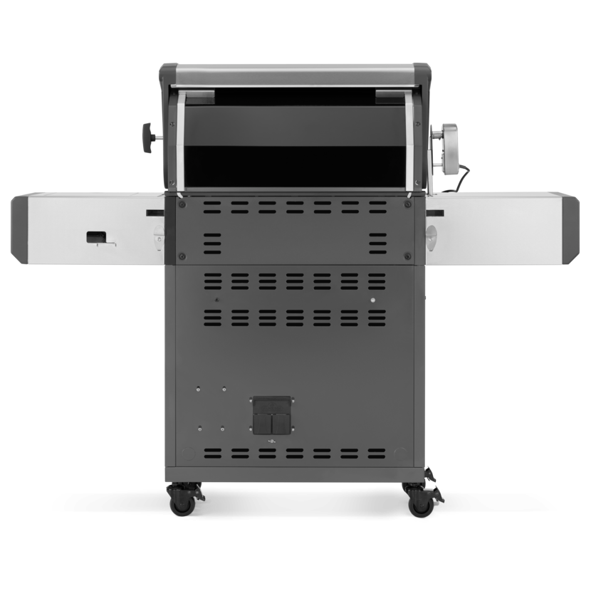 Robustní konstrukce z vysoce kvalitní nerezové oceli je navržená pro dlouhou životnost a vysokou odolnost i při intenzivním používání. Gril je osazen čtyřmi hlavními nerezovými hořáky, infračerveným zadním hořákem pro rožeň a extra velkým bočním infra hořákem Sizzle Zone™, který je ideální pro perfektní zatažení steaků. Součástí výbavy je také otočný rožeň s motorem.