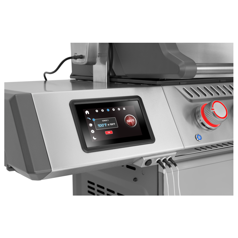 Intuitivní dotykový displej usnadňuje nastavení teploty i ovládání jednotlivých hořáků, včetně Sizzle Zone™ a zadního hořáku pro rožeň. Díky WiFi připojení můžete gril pohodlně sledovat a řídit přímo z mobilní aplikace, takže máte grilování přesné a komfortní pod kontrolou odkudkoli.