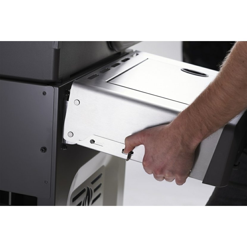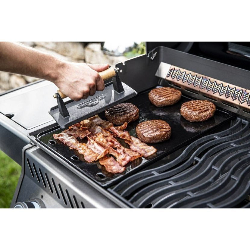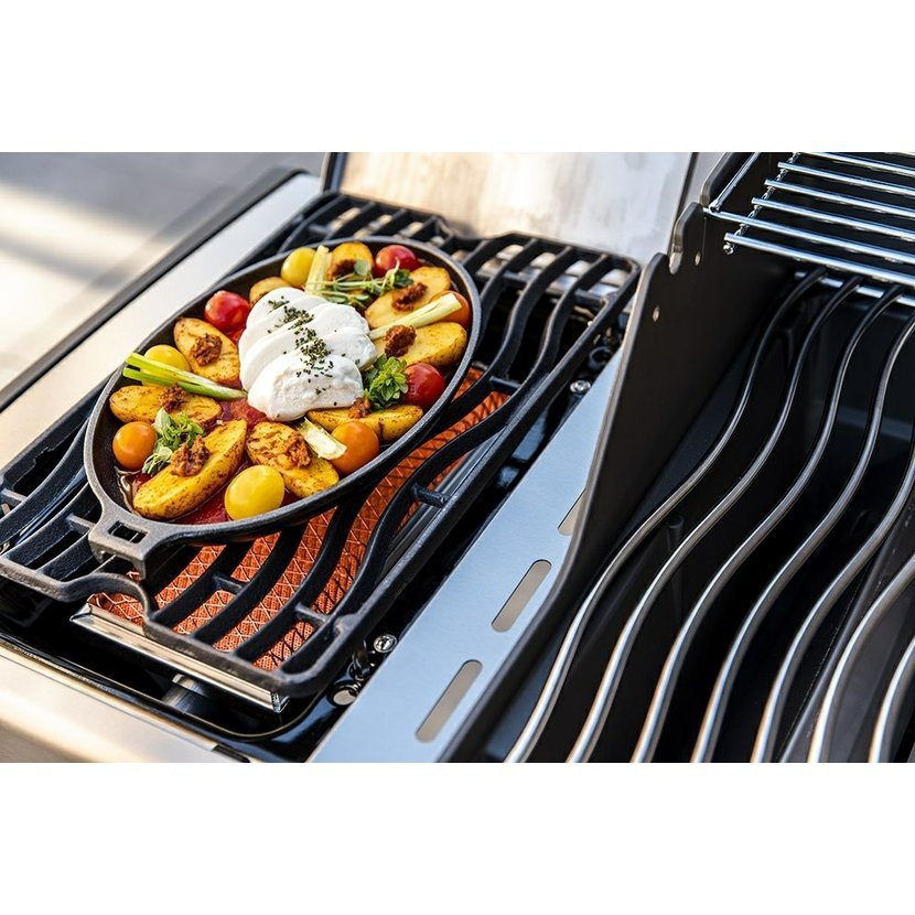 Boční infračervený hořák SIZZLE ZONE s teplotou až 800 °C pro perfektní zatažení steaků před samotným grilováním, který slouží zároveň jako postranní vařič