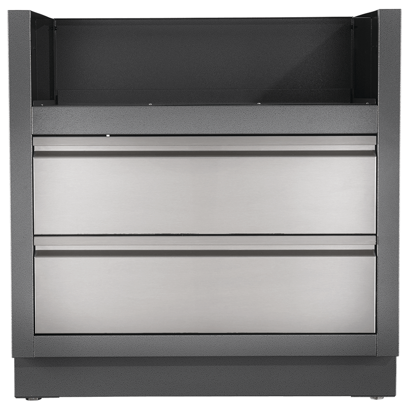 Skříň s karbonovým zabarvením, lakovaným povrchem a galvanickým pokovením je navržena pro vestavbu grilů a vyznačuje se vysokou odolností. Je vybavena dvěma zásuvkami z nerezové oceli s tichým a plynulým chodem na kvalitních pojezdech. Nechybí ani otvory pro přívod plynu a elektřiny. Díky nastavitelným nohám lze skříň snadno vyrovnat i na nerovném podkladu.