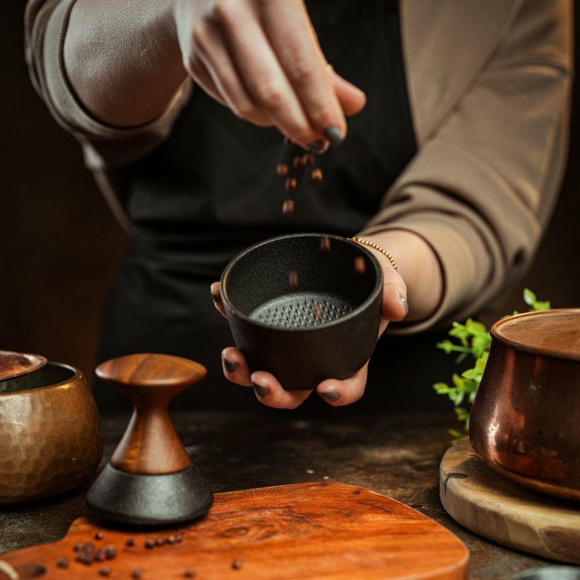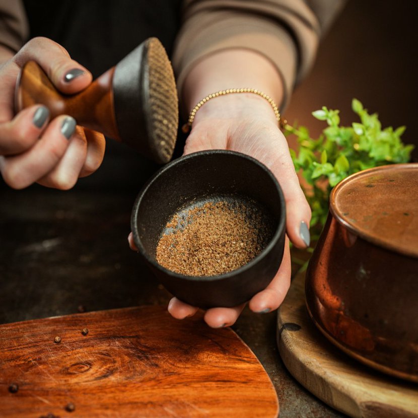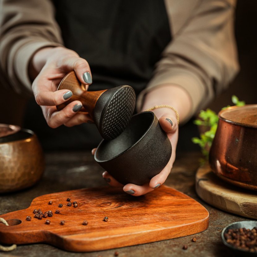 V tomto hmoždíři můžete mlýt téměř vše až na SŮL, která může postupem času litinu poškodit !!
