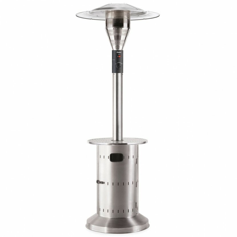 Moderní topidlo na každou terasu s pevným plastovým stolkem, výkonem 8kW a pojistkou proti převrhnutí a přehřátí.