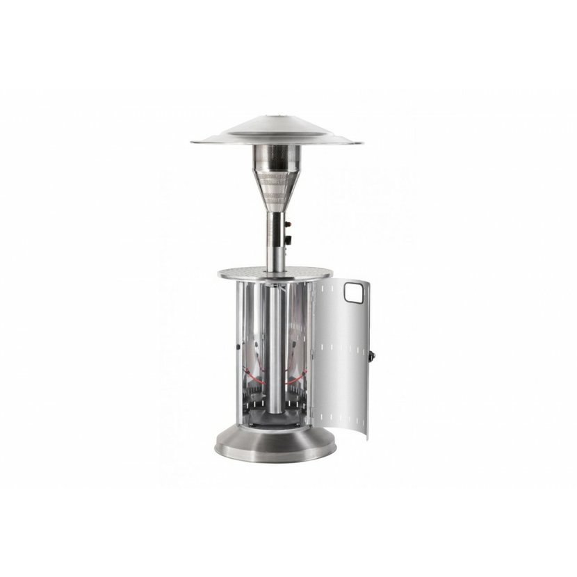 Profesionální plynový zářič s odkládacím stolkem pro komerční i privátní použití. Všechny součásti jsou vyrobeny z leštěné nerezové oceli.