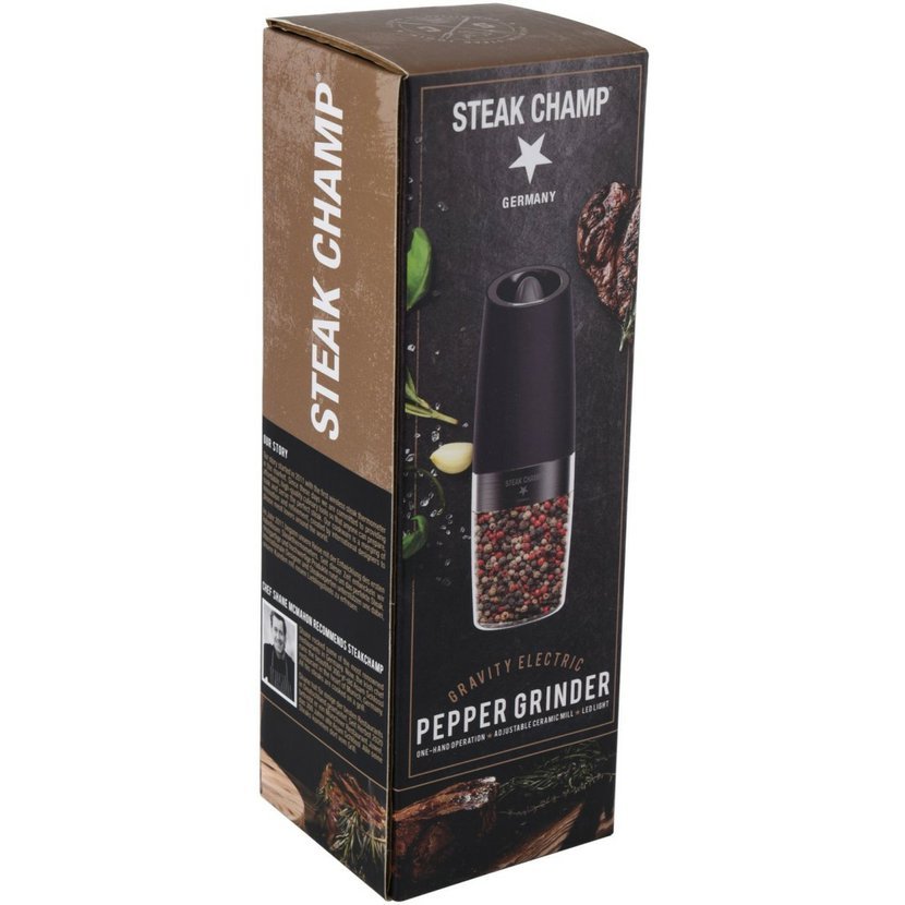 Praktický mlýnek na pepř (či jiné koření) při vaření, nebo grilování. Použití mlýnku na pepř k dochucení pokrmů je hračka. Mlýnek se automaticky zpustí při náklonu pod úhlem přibližně 90 stupňů.