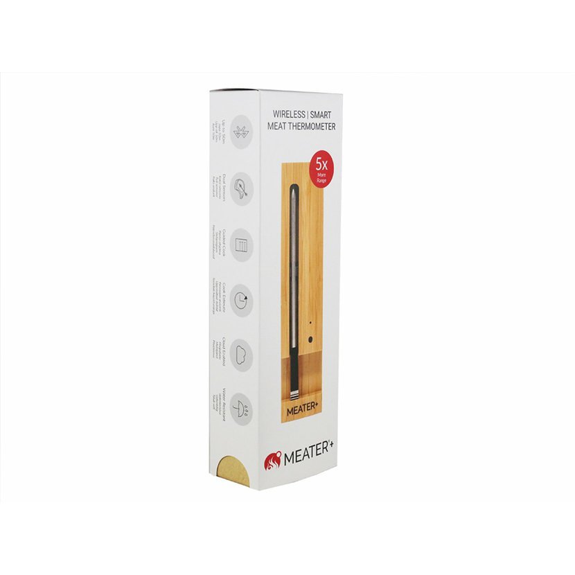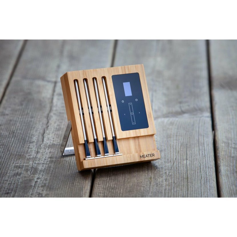 Sada 4ks bezdrátových termosond Meater+. Bezdrátová termosonda Meater+ je inteligentní, bezdrátový teploměr na maso s dosahem do 50 metrů (dosah již není závislý na materiálu). Spolu s aplikací v češtině Meater pro iOS a Android vám pomůže snadno grilovat, péct dokonalý steak, kuře, krůtí, ryby, nebo jiná masa. Využít ji můžete jak v grilu, tak i v troubě či ve vaší udírně. Již není třeba vůbec otevírat dvířka, abyste měli přehled o tom co se právě uvnitř děje, nemusíte sledovat ani žádný časovač. Sonda vás sama upozorní dle nastavené aplikace, která je v českém jazyce.