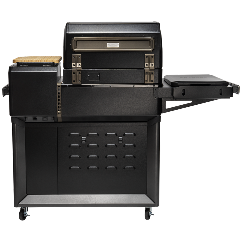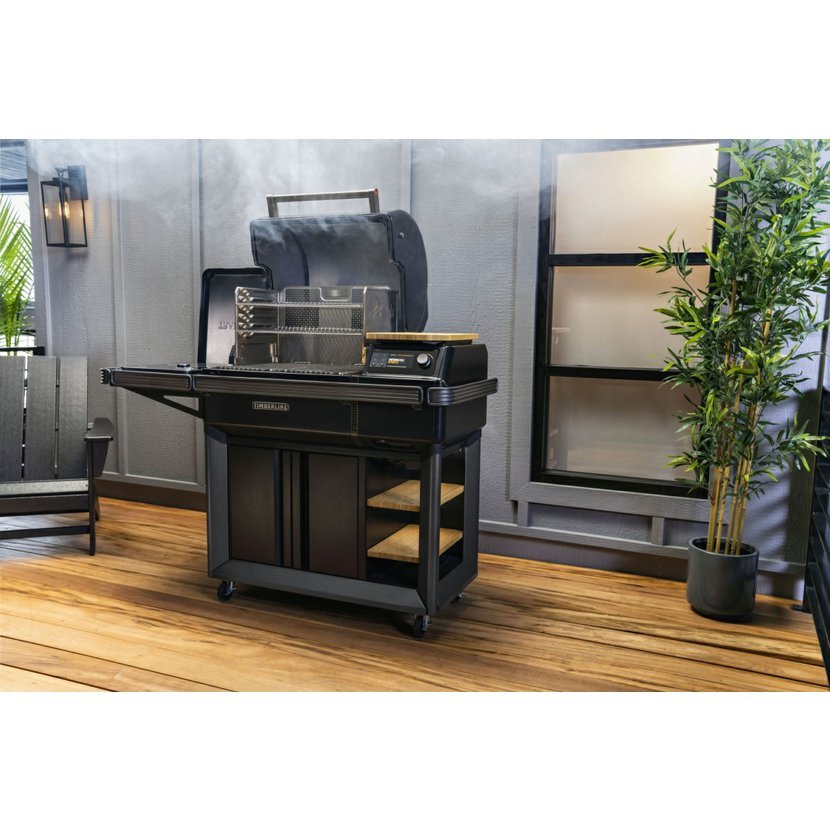 Traeger Timberline posouvá zážitek z venkovního vaření na novou úroveň. Nejde jen o gril – Timberline je plnohodnotné grilovací centrum, které v sobě spojuje nejmodernější technologie, vysoký výkon a skutečnou kulinářskou všestrannost. Kromě třípatrové grilovací plochy a výkonného peletového systému je navíc vybaven indukčním vařičem, takže zvládnete připravit kompletní menu na jediném zařízení – a to s typickou dřevěnou chutí.